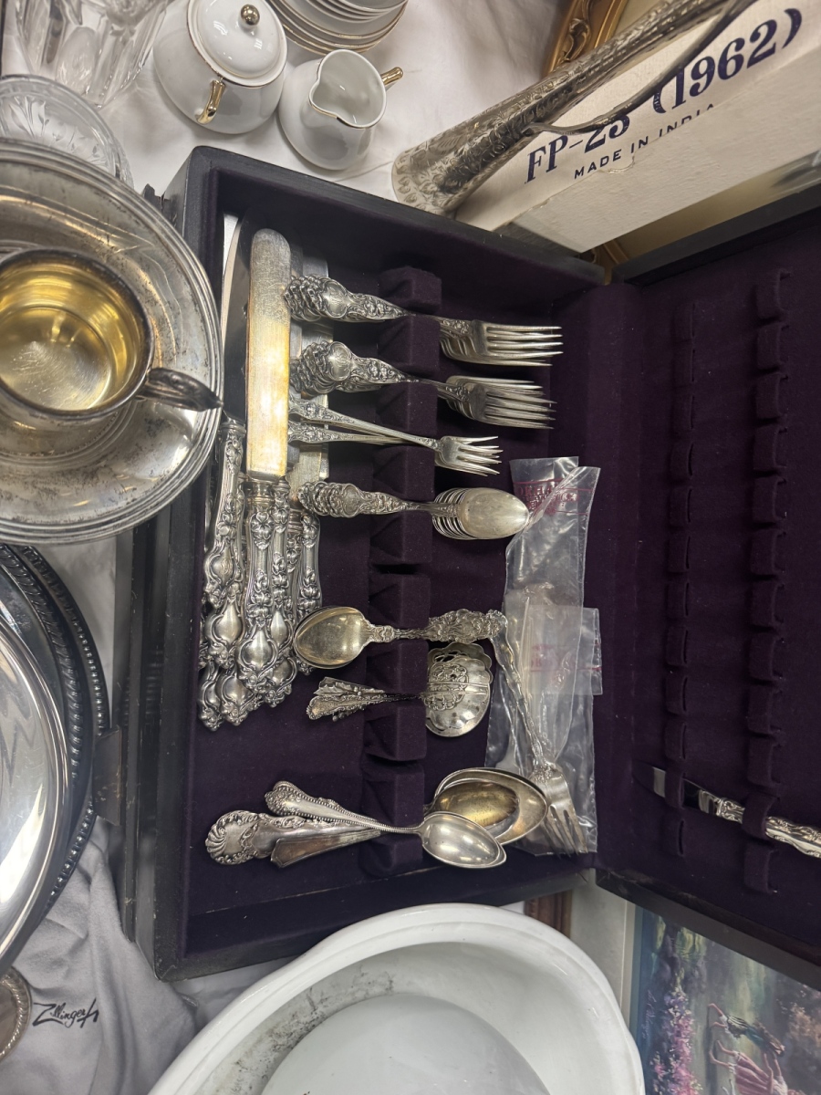 JUST ADDED: STERLING SILVER FLATWARE SET, VINTAGE CLOTHING, QUILTS and MUCH MORE … DUE TO THE VAST AMOUNT OF GREAT COLLECTABLES, NEW PICTURES HAVE BEEN ADDED … SOME ITEMS HAVE BEEN DELETED FROM PREVIOUS PICTURES. THOSE ITEMS WILL BE SOLD BUT NOT AT THIS SALE.